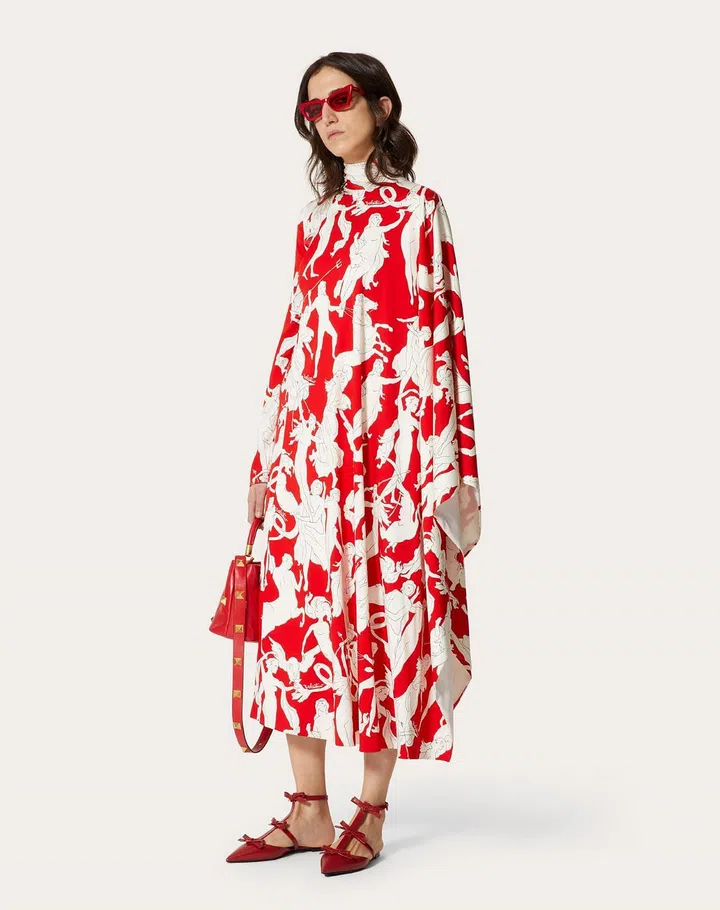 优雅知性的Valentino衣装,深受摩登女性的喜爱,这款Valentino不对称弹力斜纹布连衣裙饰有Dancing Gods 印花,并采用隐藏式背面拉链和钩眼扣开襟,让整体看起来高贵大方。