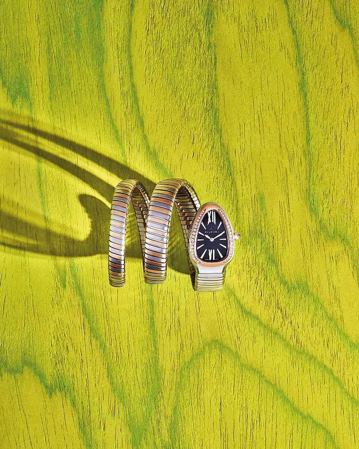 Serpenti Spiga双圈腕表新品,设计灵感汲取自宝格丽1957年的古董作品。