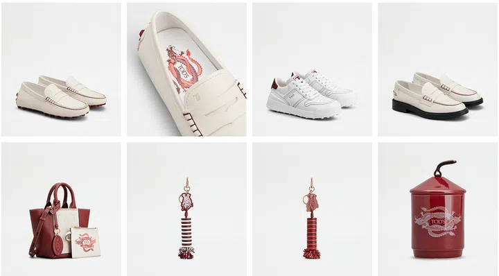 Tod's 2024龙年限定系列,以中国传统威龙形象为设计灵感。品牌标志性皮革配饰采用酒红色色调,缀上特殊双龙图案,迎接农历龙年的到来。龙年系列中的三个Tod's鞋款——Gommino Bubble、Tod's运动鞋和Tod's皮革乐福鞋——内底饰有双龙图案,围绕着Tod's徽标;标志性的 Tod's 皮革购物手袋的内袋亦饰有双龙图案。该系列还推出皮革“龙头”吊饰以及Tod’s家用香薰蜡烛。