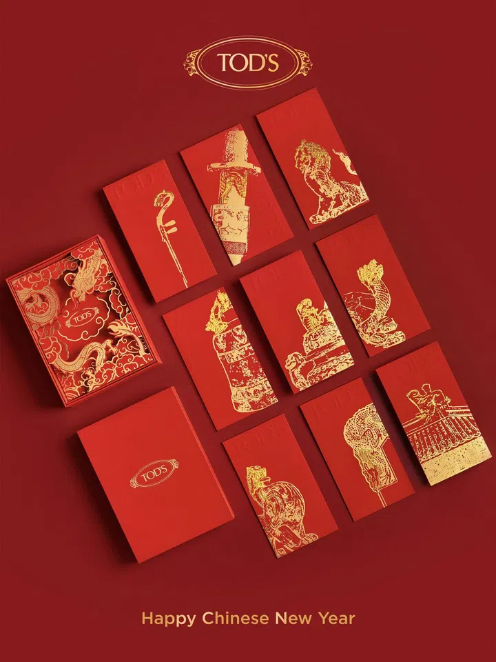 值得一提的是,Tod’s携手品牌挚友王昱珩先生特别设计制作 “九龙鸿福”红包。红包设计灵感源自中国古代神话故事:龙生九子。龙生九子的形象常见于中国传统建筑与器物当中,是龙文化中的重要组成,寄托着人们古往今来对于美好生活的祈愿。红包礼盒中,上层为一幅祥龙纸雕作品,下层为代表九子的九枚红包:龙生九子,各有所好,各表鸿运。
