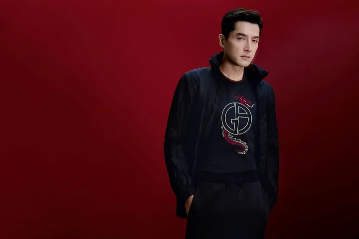 Giorgio Armani 全球形象大使胡歌为龙年限定系列演绎宣传大片。他身上的Giorgio Armani针织衫采用舒适棉质面料,立体宽松的廓形裁剪,上身利落有型。领口和肩部采用细腻绒面镶饰,新颖别致,为单品增添别样魅力。胸口缀以龙形刺绣与经典徽标,以龙为主题,既作为框绕 GA 标识的刺绣,也作为图案点缀单品。