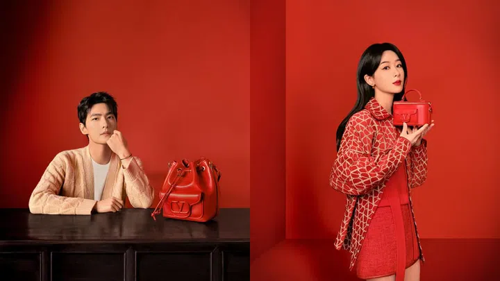 Valentino 2024新春系列回归传统视角,透过中国传统之“红”,以连接品牌标志性的红色美学与东方文化之灵感,传递新春祝愿。品牌特邀品牌代言人杨洋、杨紫演绎新春红韵系列,献上“鸿运”祝福。