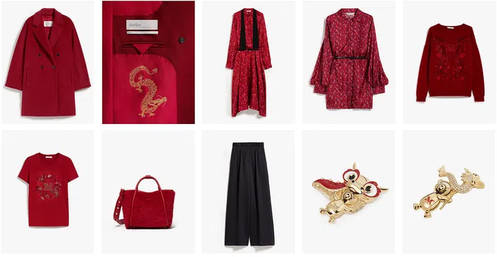 Max Mara精选了经典的黑色与深红色单品,其中包括短款泰迪熊外套以及其他浓郁红色调的迷人夹克,并配有龙年主题的衬里。花卉印花衬衫和针织品让人想起斯堪的纳维亚野花,搭配闪亮的胸针,使整体造型更加完美。