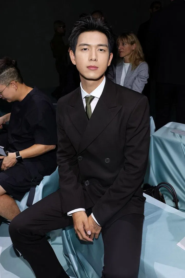 Prada代言人、中国演员李现身穿笔挺的西装搭配精致领带,完美展现绅士风范。