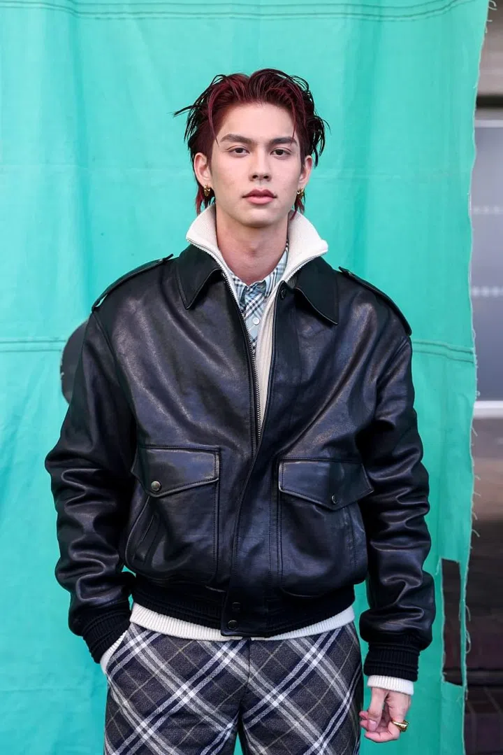 泰星Bright作为Burberry全球品牌大使,身着2025春季系列造型,潇洒皮衣搭配宽松格纹裤,演绎时髦松弛感。