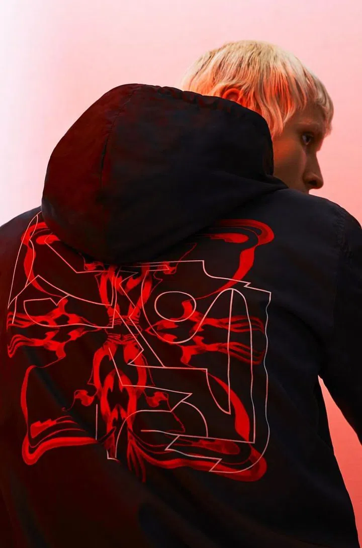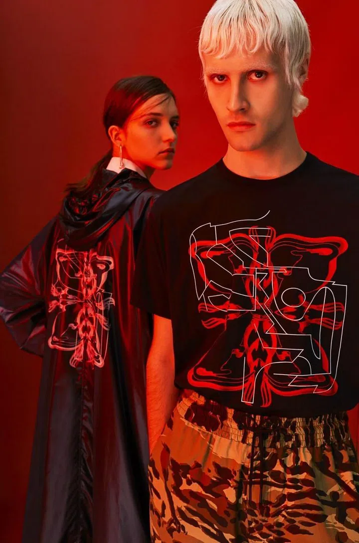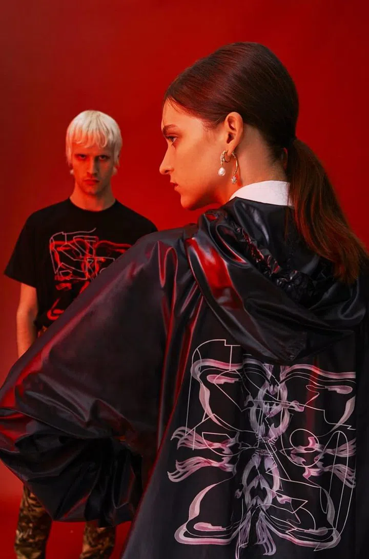 撞色线条交错如迷宫般交错重叠,代表瑞鼠主宰自己的世界,不受约束与自由,呈现在男女款的T恤、卫衣及大衣之上。