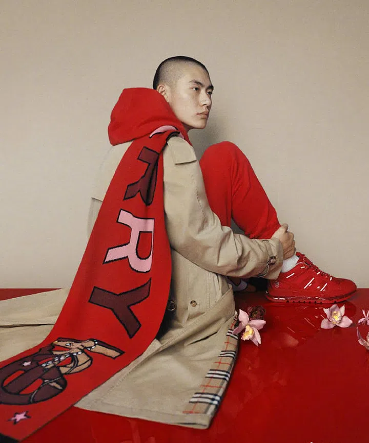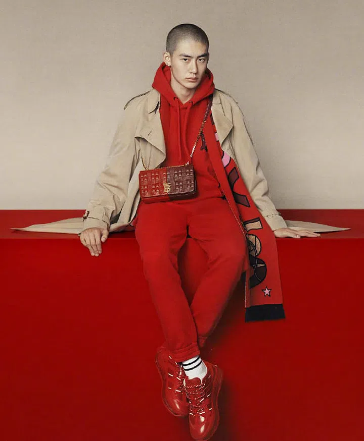 模特梁继远身穿 Burberry 2020 新禧贺岁系列。