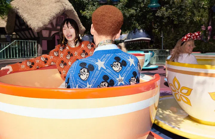 富有传奇色彩的迪士尼经典形象以彩色印花、刺绣贴饰或提花图案的形式亮相Gucci 2020早春成衣和配饰系列。