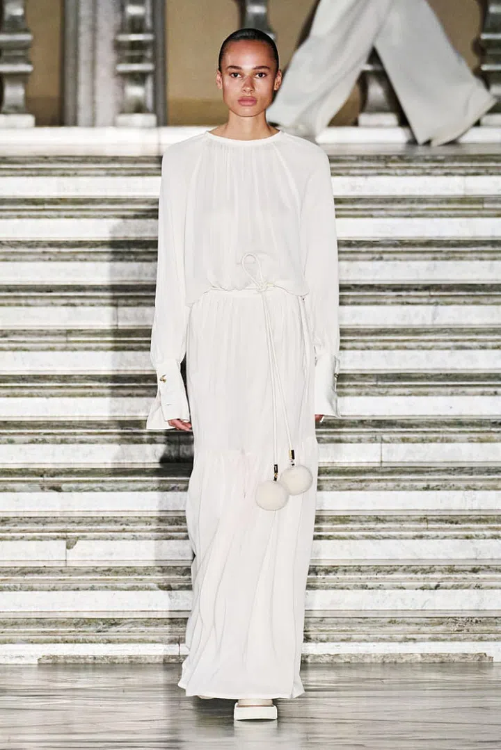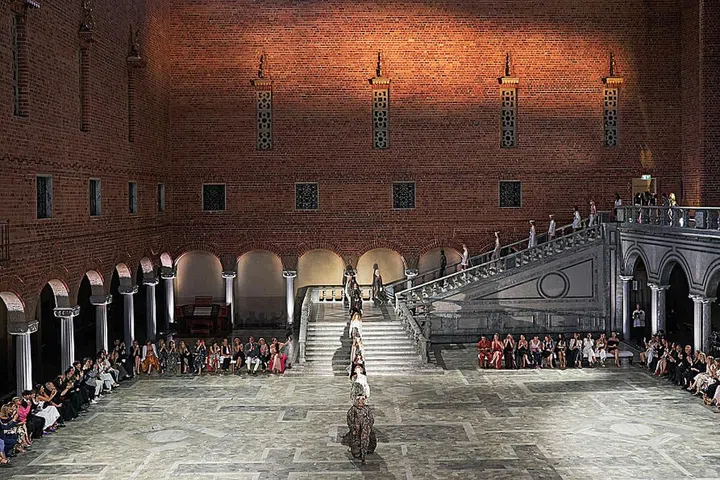 本季,麦丝玛拉(Max Mara)带领人们前往北方寻觅避暑之地,以都市时尚角度诠释北欧设计美学与风情。2024早春系列发布会选址于瑞典斯德哥尔摩市政厅(Stockholm’s City Hall), 距今已有百年历史,自落成以来始终是诺贝尔奖颁奖晚宴的举办场地,而斯堪的纳维亚(Scandinavia)的壮丽自然景观与充满神秘奇幻色彩的民俗传统成为Max Mara的灵感源泉。