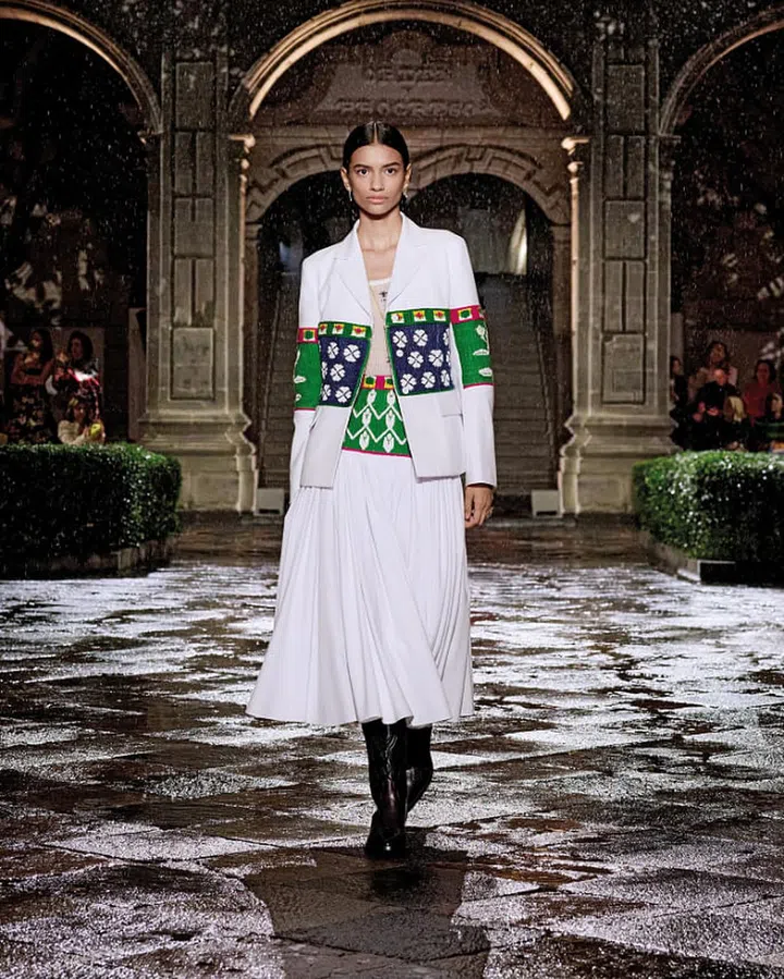 Dior 2024早春成衣系列深情致敬墨西哥艺术家Frida Kahlo的标志性形象,展现她与墨西哥文化的紧密连结。Frida Kahlo通过服装表达个人态度,成为象征、宣言、抗议与主张的化身。发布秀地点选在墨西哥城的Antiguo Colegio de San Ildefonso博物馆举行,这里曾是Frida Kahlo的学校,亦是她遇到一生挚爱Diego Rivera的地方。品牌利用其特殊的置景体现该系列的灵感源泉,向品牌自创立以来与墨西哥建立的纽带致敬。