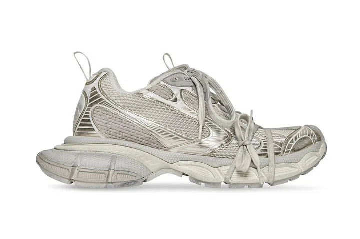 Balenciaga是奢侈品运动鞋热潮的领军品牌之一,今年夏系列推出全新的3XL SNEAKER运动鞋,抢眼的宽大鞋底延续了品牌的标志性设计,鞋身由不同大小的科技网眼材质拼接而成,加上特殊的鞋带绑法,整体风格大胆醒目。做旧的鞋面设计则让你在环球趴趴走的同时,无需担心鞋子弄脏。其制作过程也经过仔细的碳排放量计算,旨在秉承永续精神,减少产品的碳足迹。