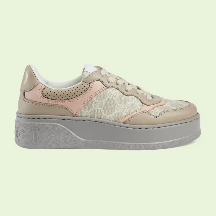 Gucci的GG厚底运动鞋,在经典设计中融入复古格调,整体以燕麦色为主调,显得温柔轻盈又不失年轻活力。鞋面拼接了白色及米色GG Supreme帆布,以及深浅不一的燕麦色皮革框边,时髦舒适两不误,成为日常旅游、约会和上班的不二之选。