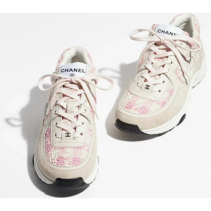 想要寻找一款不那么厚重、更具女性柔美特质的运动鞋,这款Chanel春夏系列的粉色运动鞋是理想之选。粉嫩嫩的色调,散发满满的少女心,材质结合了棉质斜纹软呢、麂皮效果小牛皮与小牛皮,整体重量轻盈,上脚舒服,提升旅行穿搭质感。