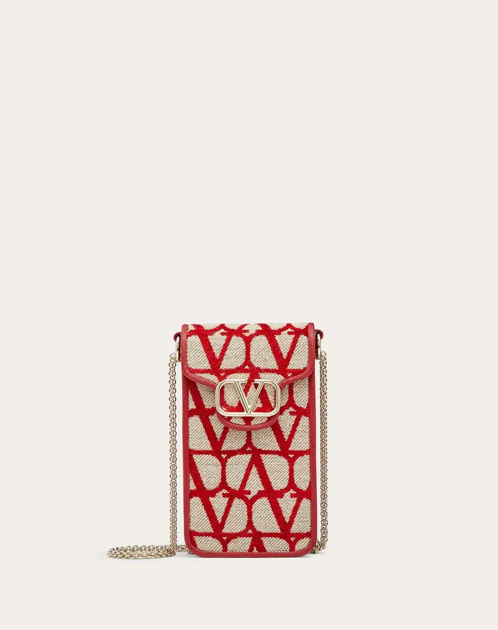 Valentino抢眼活泼又不浮夸的V标志Locò手机包,配以品牌经典的金属Vlogo金属标志、使用方便的磁扣开合,内部是软羊革衬里,并配有三个卡槽,收纳不同信用卡。