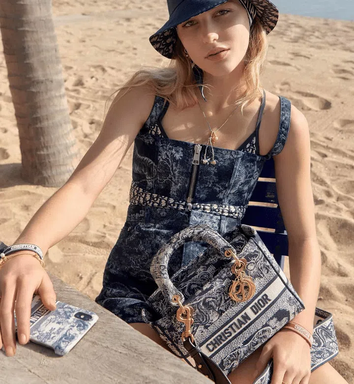 在Dior 2021秋季系列中,以“Reverse”茹伊印花为主打,在包身描绘出树林和飞禽走兽图腾,再以刺绣工艺勾勒。不同于以往的印花,这回以“反转”效果呈现,针线纹路的颜色与之前相比颠倒过来。除了Lady D-Lite之外,还能在Book Tote和Saddle马鞍包找到同样的花纹,并以四种颜色体现,衬托别样的时尚风格及优雅姿态。