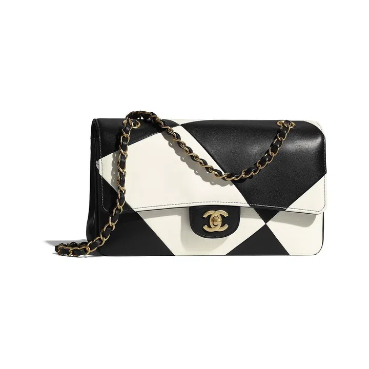 Chanel 2021早秋高级手工坊系列,灵感取自法国舍农索城堡的景观以及曾经居住在此的女性。系列中的黑白菱格纹手袋就是以城堡长廊的棋盘格地面为灵感,共有羊毛小羊皮、光滑小羊皮、斜纹软呢拼接丝绒等材质的选择,为手袋增添华丽和态度。