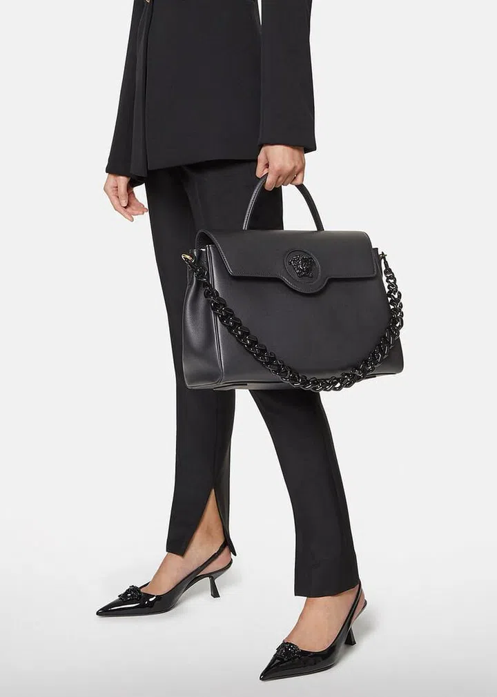 喜欢经典不败的黑色手袋?就不能错过Versace推出的Ultra Black 极致酷黑系列手袋,选用纯黑色小牛皮和绗缝羊皮打造La Medusa和Virtus系列手袋,搭配黑色漆面或金色五金件,充满神秘与难以抗拒的诱惑。