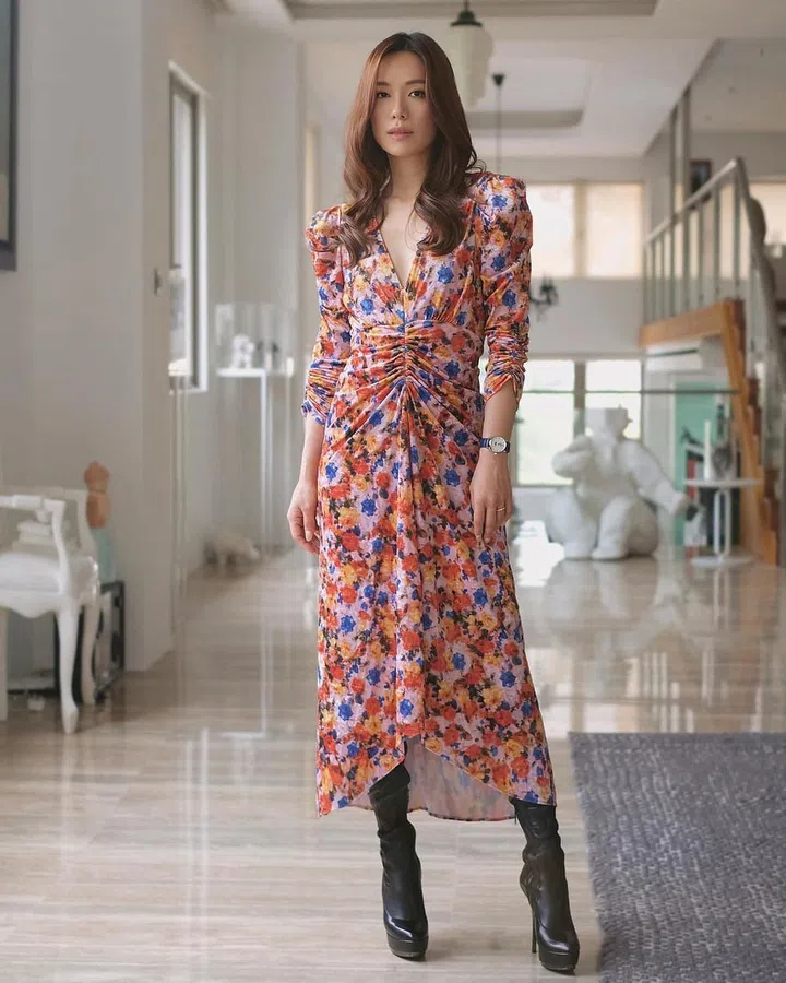 想要拥有林慧玲同款连衣裙?原来,这是Isabel Marant的Gilalbi中长连衣裙,运用柔软的花卉印花天鹅绒制成,修身裙身恰能凸显身材曲线,V 领和通身的褶饰更添几分设计感。