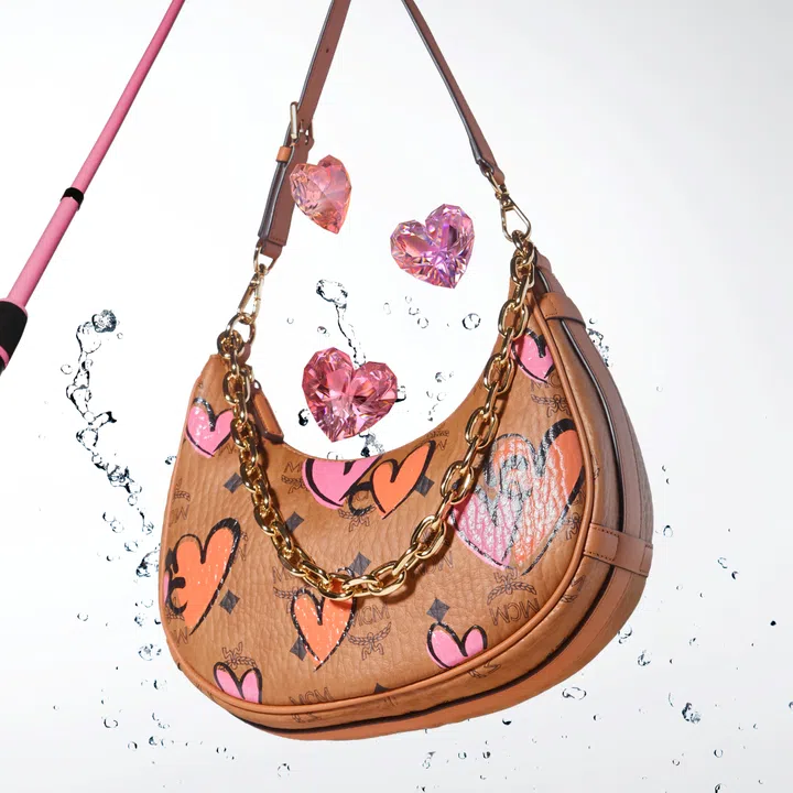 今年情人节, MCM从深海传递浪漫心意,展示意想不到的现代创意。此款情人节升级款Visetos半月形Hobo包,在经典的Visetose花纹上叠上由手绘爱心拼出的经典MCM字母,展现爱情的恒久之美。