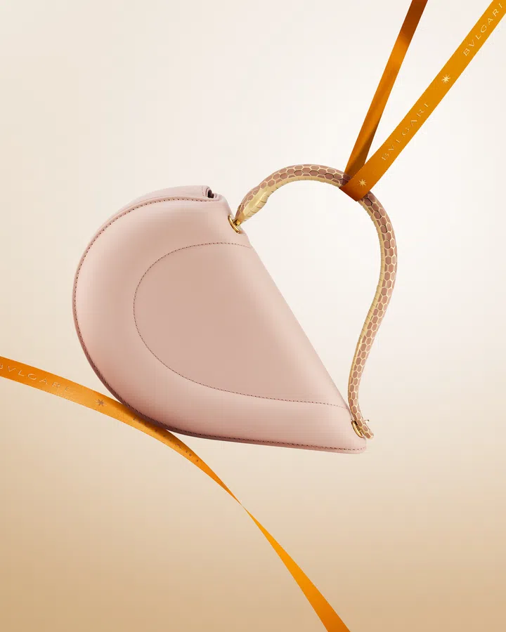 宝格丽Serpenti Cuore 1968系列手提包精妙呈现半心形造型,充满视觉美感。 这款手袋以小牛皮精制而成,搭配金属质感蛇形手柄,巧妙致敬1968年问世的一款Serpenti系列珠宝腕表经典之作。包包提供一条别具匠心的可拆卸蛇形链条,适用于多种佩戴方式。