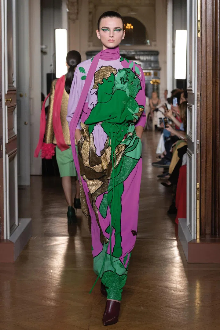 创意总监Pierpaolo Piccioli说:“高级成衣是现在的,即穿的美丽,但高级定制则表达是更远更深的,未来的魅力。”他以古希腊阿波罗精神为灵感,打造出以随意与率性为主的端庄高定系列,运用鲜艳的色调与层层拼接剪裁,堆垫出浓厚的文化气息。