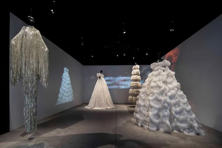 Pierpaolo Piccioli从Valentino近代和当代作品中,精心挑选出一系列典藏服装展出, 包括最新的高级定制系列:Of Grace and Light和Code Temporal高级定制系列,以及2021秋冬ACT系列中的高级成衣。