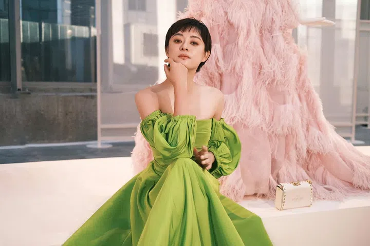 Valentino品牌大使关晓彤身着Valentino 2022早春系列造型,搭配可爱的Valentino金球包。