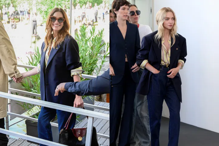 明星最怕撞衫,但Julia Roberts和Amanda Seyfried却选择在身着同款Versace西装造型!两套搭配皆由造型师Elizabeth Stewart打造,这一身穿搭出自Versace新任创意总监Dario Vitale的首秀之作,并非巧合,而是一场精心策划的惊喜。
