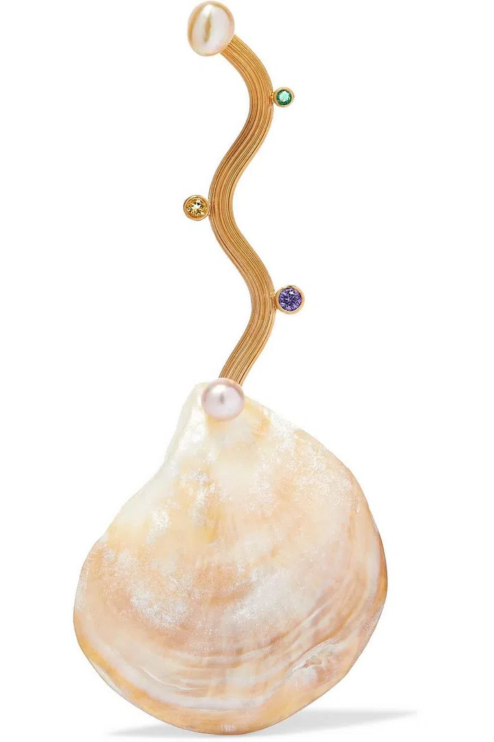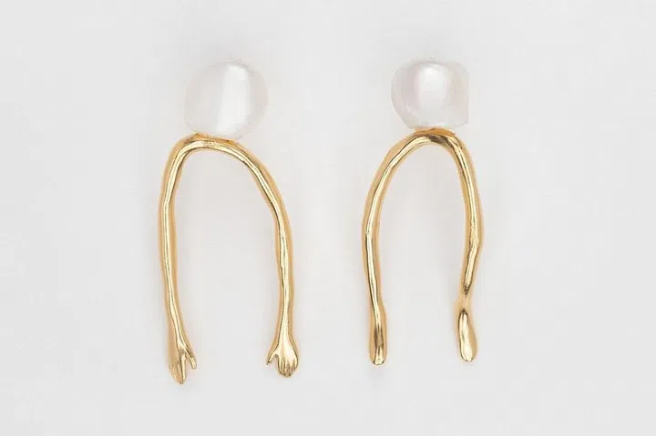 Gold-plated earrings with baroque pearl by Bjørg Jewellery, €208 (S$327)