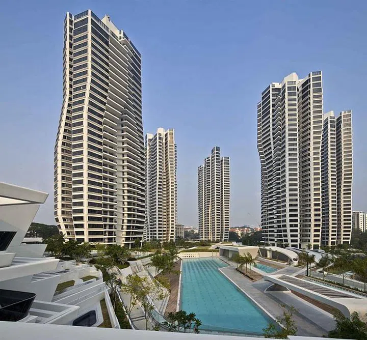 从未设计过大型纯住宅项目的Zaha Hadid,把这第一次给了新加坡,和嘉德置地在7万8000平方米的土地上打造由7座36层公寓楼构成的丽敦豪邸(d’Leedon),是该地段最居高望远的住宅。公寓以垂直高层建筑高效的空间利用率为特色,整个建筑工程只占了总用地的30%,住户享用覆盖基地70%的绿色植被,其中还包括弯曲的踏步和高耸的景观形式。