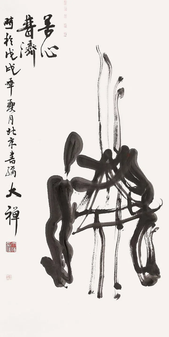 释大禅,中国诗书画僧。幼学书画,少有灵异,无师自通。 稚子吟诗,弱冠忘禅。师从古法,独辟蹊径,境格高 古新奇,有清净风,喜诗文,文采平实,古色古香。 诗于书,书于画,画于自然,俱足禅味。参禅九华, 步朝五台山,吟诗记行。倡导以艺入道,致力人间佛教。