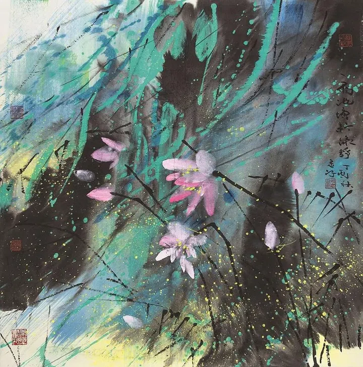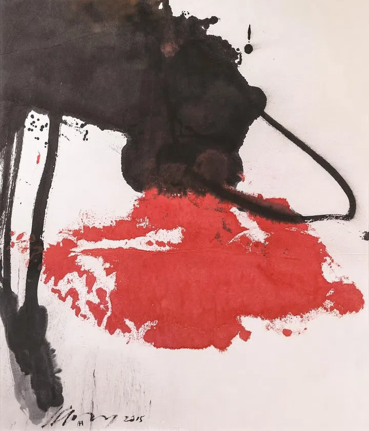 于美国旅居超过五十年,王瑾的艺术造诣得益于他追求率性,自然洒脱而坚定的脾气秉性。他把东方意蕴的思想和西方艺术的理念融合在自己的艺术世界里, 形成了具有东方艺术精神和内涵的抽象表现主义风格, 反映出一种跨越文化边界的艺术创造。观其作品,苍 劲的线条带动着大色块,还有随笔劲之势飞出的即兴的笔墨,强烈的色调,多重的构图,老辣的笔触,创造出极富表现力的艺术语言,呈现出一幅幅铿锵有力的作品。这无不在表述他内心深处的感触与矛盾,他的笔触中已包含了一切的表达,试图唤醒人们心中一 种与生命事物的内在关联感。