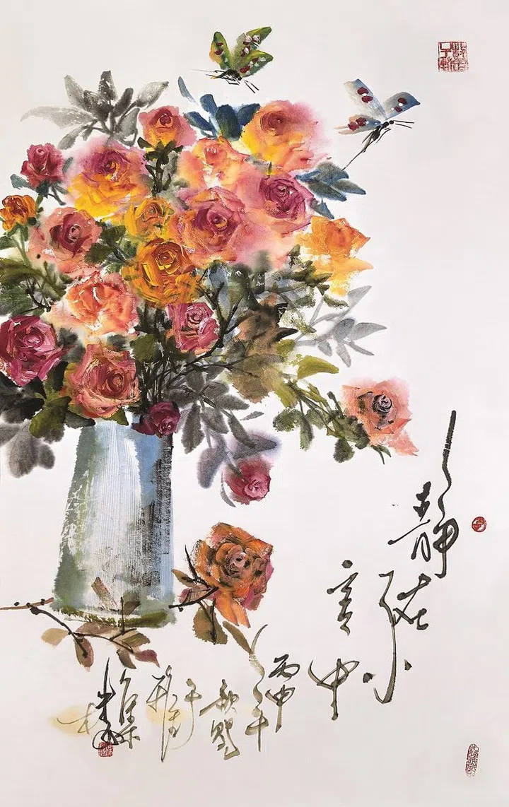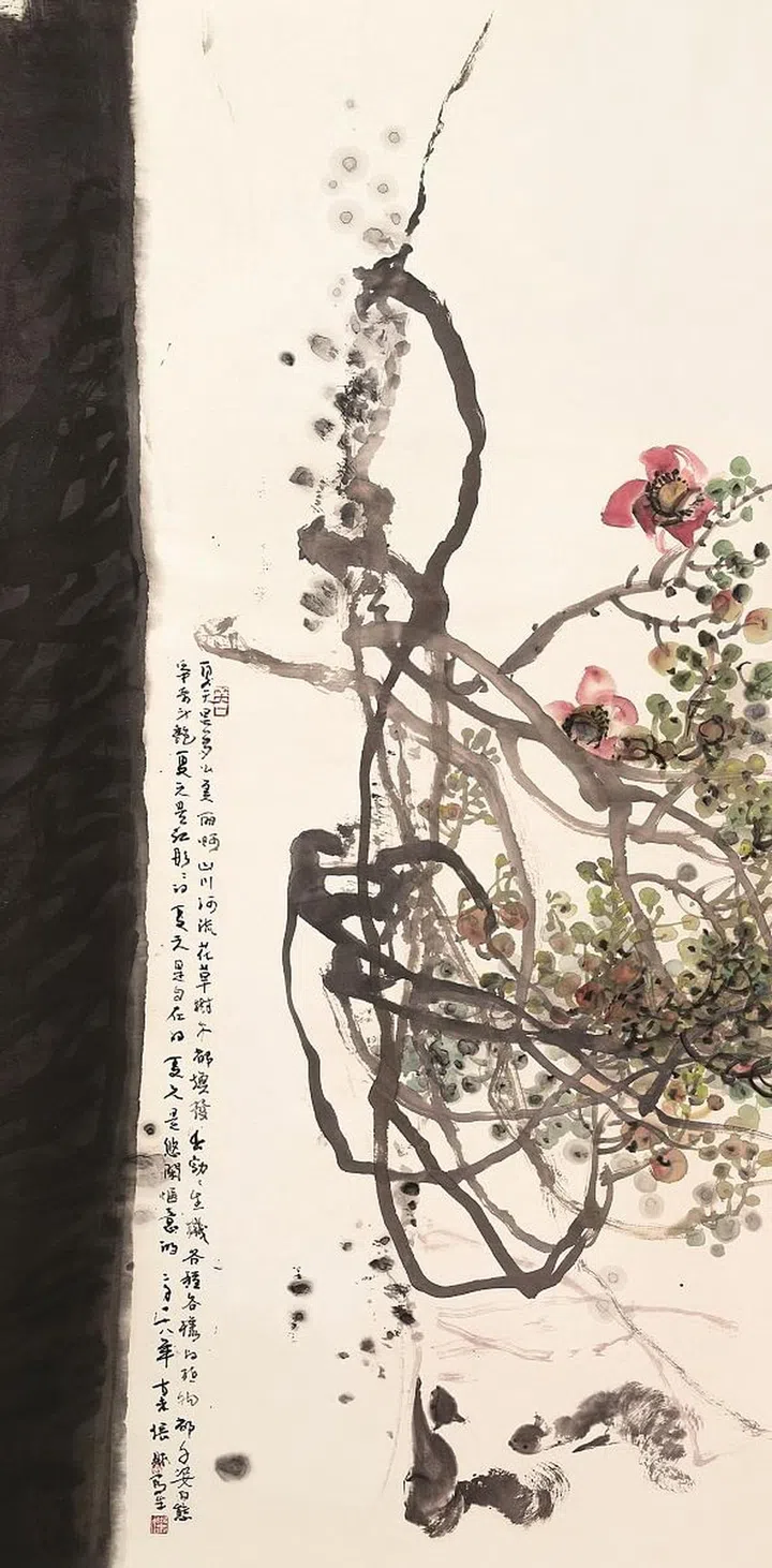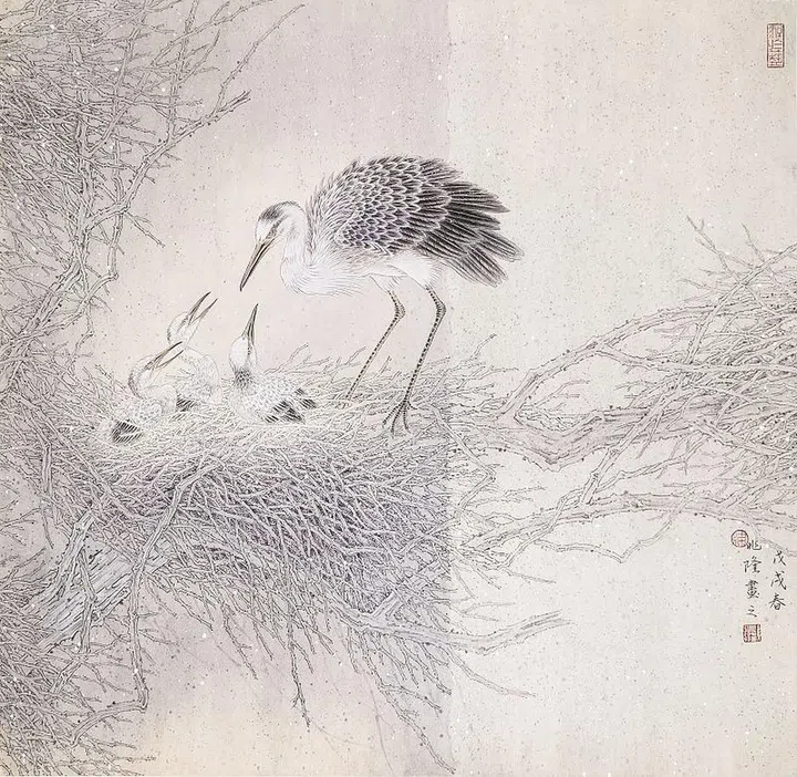 梁兆隆的花鸟水墨作品师法宋元,问道于笔墨,观其画作笔墨清雅,兼工笔带写意略具元人“ 墨花墨禽” 的韵致, 但又不失当代的艺术语境,关注当下中国的社会现况。 梁兆隆心性温和文雅,画作追求气韵生动、骨法用笔等技法,采用诗画合一的形式,以宋词意境为基调,唤起观者对画面文学性的丰富联想进而完成作品整体意境的 创造。他用生动笔墨描绘万象,在水墨幽玄的黑白世界中, 蕴藏着探索生命意义的哲理。“ 家园 ” 系列是他具有代 表性的工笔花鸟作品,结合传统的笔墨韵味与当代的构图,营造出具有人文情怀和时代精神的工笔花鸟逸品。