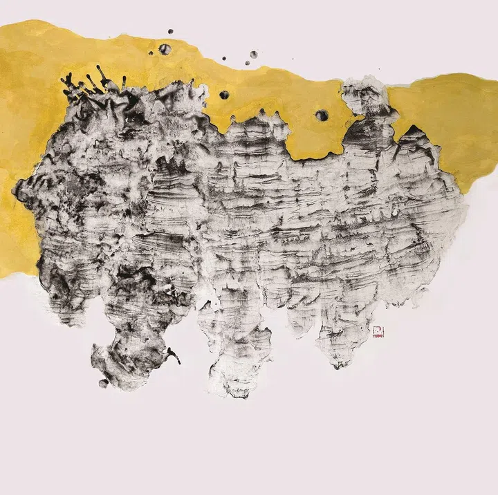 胡财和是一位多元多栖的艺术家,艺术生涯跨越了三十年,形成了属于自己的绘画语言和审美观。他的 画作在游览武吉知马,及其周边自然保护区等天然纪念物时受到启发。他巧妙运用自己独有的技巧,让图像在抽象和比喻之间游走,令画作看起来像摄影作品 一样。白色的皱摺与浓烈的水墨产生强烈的对比,浓淡交错、收放适度,突出了水墨互渗的黑白效果,体现出自然的意趣。他的作品具有厚实深沉的内蕴,充满着原始的生命力及盎然生机,所刻画出逼真的岩石层、沉积层和地层,表现他对地质和岩石的浓厚兴趣,也蕴含着他深切的自然情感与人文关怀。