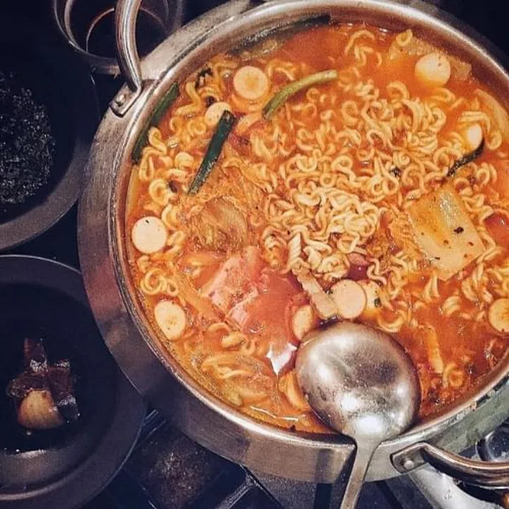 听起来有如在从军,但吃起来很开怀。辣汤里的快熟面、香肠、午餐肉、豆腐都是食客最爱。很多韩国餐馆里都能找到。