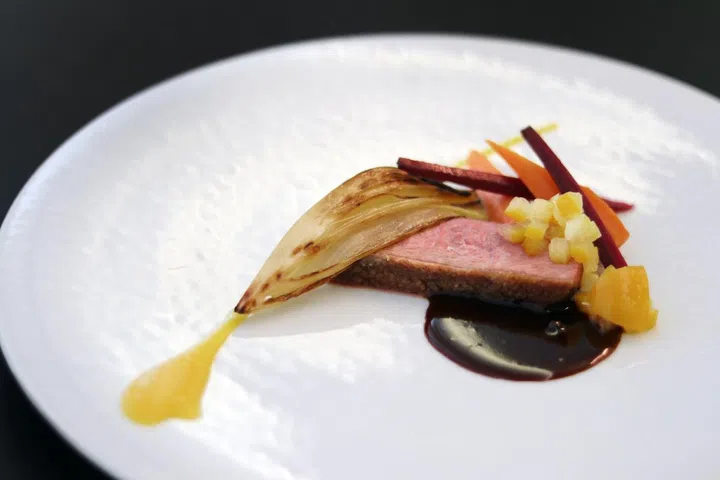 米其林一星餐厅Beni将农历新年元素也融入到情人节菜单中,主厨山中贤二将情人节的主题定为“A Taste of Love”,每对情侣还会得到由日本花艺设计师田段(Dan Takeda)准备的一束鲜花。菜单所有的菜肴都是用爱制作,Beef Consomme采用的是著名的神户牛肉,耗时三天准备,饱含深深的爱意。Nodoguro的多道工序更是考验烹饪者的耐心,蒸煮后以清淡的调味料烹制,并用甜洋葱、马铃薯泥和鸡肉汁烹制而成。 烤土豆的时间长达一个小时,金黄色的酥脆口感,令人回味。