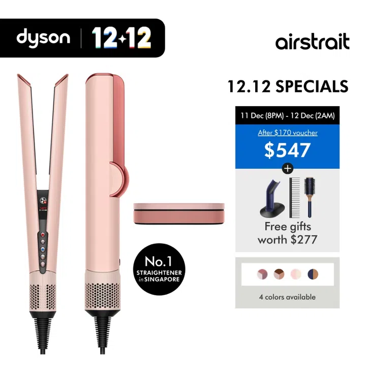 这款Dyson Airstrait直发器以革新性的“空气直发”科技重新定义造型体验,无需加热夹板,即可从湿发直接吹干并拉直。通过精准控制的高速气流与智能温控系统,在不依赖高温的情况下塑造顺直发型,有效减少热损伤,保护发丝天然水分与光泽。12.12特别优惠期间(11月11日晚上8点至12月12日凌晨2点),使用$170购物券后仅需$547,即可入手心仪产品,并额外获得价值$277的免费赠品。