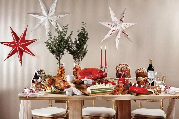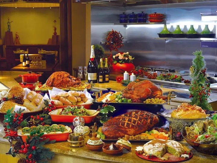 平安夜晚餐与圣诞节午餐,推出节日自助餐,包括烤牛肉、慢烤羊肩、法式鱼汤、黑猪肉火腿、去骨烧烤猪排、火鸡肉卷等等。