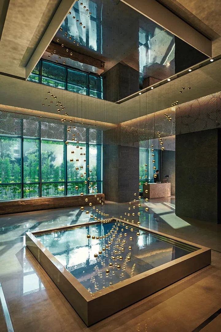 这个号称“全球酒店首创4D浮空动力装置艺术”,结合工艺与科技,让168颗金属球在空中和水上漫舞,象征高雄作为海上明珠的地位。