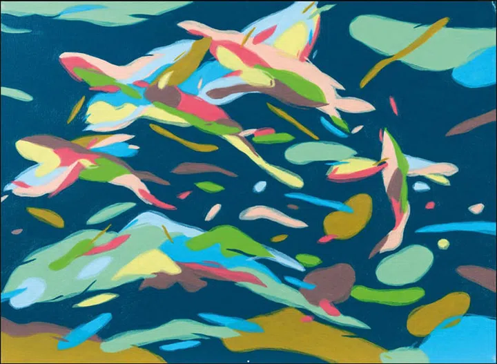 阿部清子的《龙床》壁画,结合日本水墨艺术和当代漫画风。