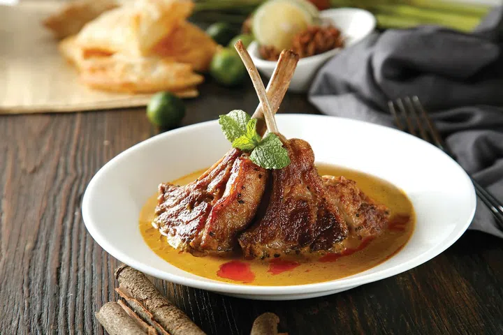招牌羊肉咖喱,使用的是澳洲新鲜小羊排,微微炙烧,肉质粉嫩。底下的马铃薯泥增添芳香滋味与顺滑口感。微辣而带有甜味,味道更像日式咖喱。
