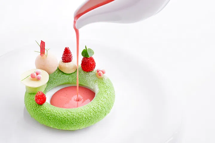 刚刚二度获得米其林一星的The Kitchen at Bacchanalia,主厨Luke Armstrong 更新了餐厅的点菜菜单,展示他最新的创作。从Pineapple Tomato开始带来全新的美食体验,现在是菠萝的旺季,来自普罗旺斯阿尔卑斯蓝色海岸优质土壤培育的品种,搭配藜麦沙拉、番茄丁、接骨木花乃样以及西班牙番茄肉冻汤。另一个前菜选择是Duck Foie Gras,用果冻上釉,搭配巨峰葡萄,新鲜的杏仁和苹果,保证了适当的酸度。主菜Wild Turbot选用当季野生捕获的鲽鱼,搭配藻类奶油、烤茴香与洋甘菊奶油。而Dry-aged Fillet of Beef采用草食牛肉与野生芦笋,与骨髓和百里香酱混合在一起营造出浓郁的味道。Aged Pigeon烤至全熟,搭配小紫蓟、鹅肝与牛肝菌醋。甜点的亮点则是Pistachio Parfait,西西里开心果做成糊状,搭配焦糖化的白巧克力Cremeaux与腌制的野生浆果,营造出梦幻的效果。