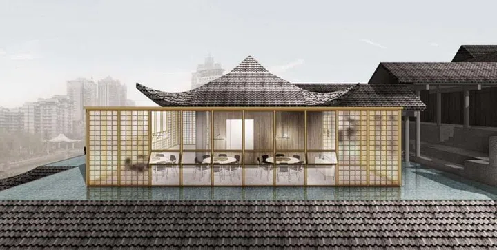 安顺廊桥本就是成都历史悠久的古迹之一,最初的建筑踪迹可以追溯到元代。在马可·波罗的游记中,安顺廊桥是他印象中较为深刻的四座大桥之一。二十一世纪初,安顺桥几经修建才得以恢复其大致的原貌。从廊桥酒楼到The Bridge廊桥,建筑进行了全面改造,这一工程交给了如恩设计研究室(Neri & Hu Designand Research Office)创始人郭锡恩先生和胡如珊女士。这是在国际上斩获多个重要奖项的二人的首个中国西南地区项目。廊桥在保留传统建筑现有结构和屋顶轮廓的同时,重塑整体空间构造和内外装潢。新廊桥在建筑手法上结合成都本土的传统建筑语言,以“漂浮的灯笼”为设计概念,创造出极具吸引力的空间来满足顾客的所有感官,将空间体验演绎成为一个层次丰富,值得无限回味的旅程。