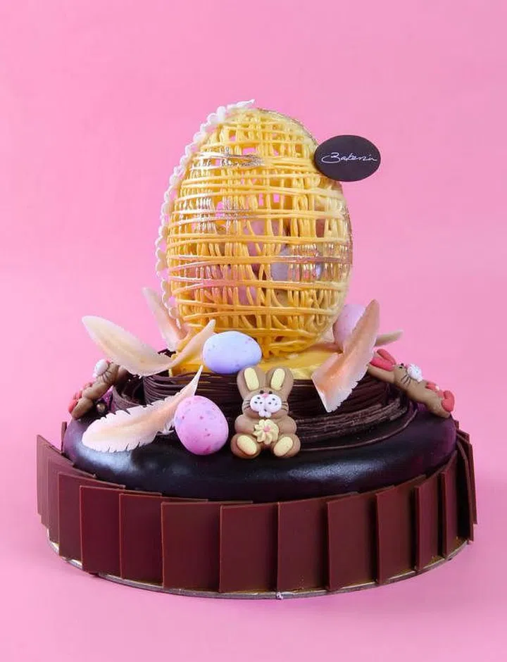 蛋糕的挑战在它的三维设计,每个细节和角度都讲究,像它外层用巧克力做成的巨型“蛋壳”就很考功夫。为了让食客看了有“哇!”的惊艳,蛋糕特地搭配用巧克力做成的兔子饼干、翅膀形糖果和迷你复活蛋,构成缤纷可爱的节日主题。