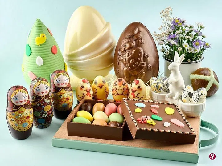 泛太平洋新加坡的糕点师傅姚滕壮说,复活节向来跟重生、春天和巧克力有关,复活蛋通常收在盒里,因此想到用手打造可食的巧克力糖果盒子,里头装有黑莓、覆盆子、斑兰椰子和巧克力焦糖等不同口味的复活蛋,让爱巧克力的朋友有双重惊喜。