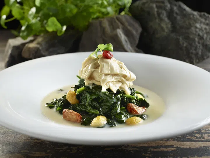 曾为VLV中餐馆夺得“最佳亚洲风味餐馆”金奖的符兴毅主厨前不久上任做翡翠皇宫的主厨及翡翠集团的行政主厨。翡翠皇宫保留了原有的菜单,再将符主厨的菜肴独立出来,限时推出全新的单点与套餐菜单,全部都是符主厨的创作,菜单一直供应到9月底。喜欢点心的就不要错过“皇宫四部曲”,其中有波士顿龙虾松露饺、鲍鱼仔烧卖、石斑鱼墨鱼汁饺、香菇芹菜饺。希望得到进补的就不要错过煲汤“黑蒜响螺炖海参花”,而“黑松露竹笙烩鸡茸汤”则更能够让你在闷热潮湿的新加坡排出体内的湿气,汤还未上桌,黑松露的香味就将人的注意力吸引了过去。