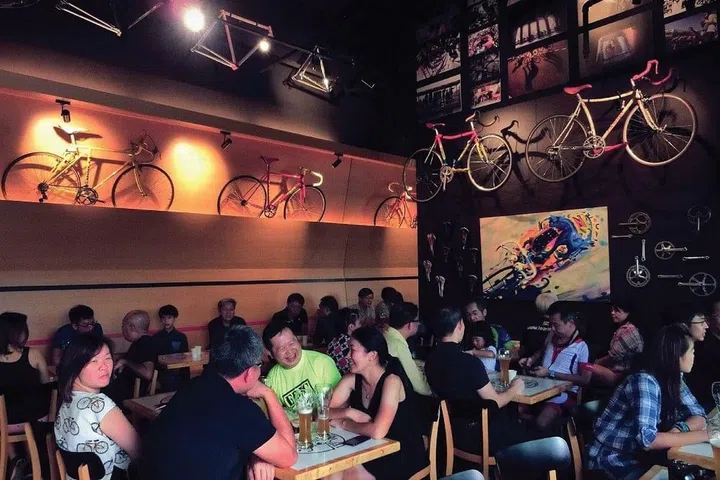 不一定会骑车也能欣赏这里的概念,成排的复古脚车和挂在墙上的脚车相关物品都是艺术家Poon Kng Joo的珍藏。机场就在隔壁,可观赏飞机起飞降落。提供价格大众化的西式、日式和本地美食,也是欣赏夕阳的好地方。