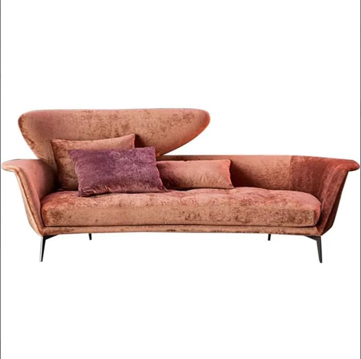 意大利设计师Sergio Bicego为Bonaldo设计的Lovy系列沙发,半椭圆形的轮廓让整体造型不会呆板,侧边往上延伸出一块独立靠背营造几许趣味,也是不对称美学的体现。活珊瑚色丝绒面料让家居更添高贵与温馨。