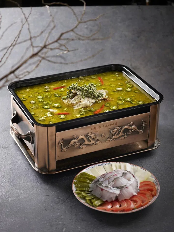 位于厦门街,提供一系列经典与精致川菜。推介这里的霸道酸汤肥牛,川菜中最具代表性的传统佳肴,汤底是由12种蔬菜蔬菜加高汤熬制数小时而成,配以口感爽脆的青笋丝,金针菇作为底菜,再加上上等肥牛薄片,精心烹制。藤椒鲜鱼锅在四川火锅青椒锅底的启发下改良,熬制好几个小时,起锅时还加入川菜特有的藤椒油,增添四川特有的麻辣味。
