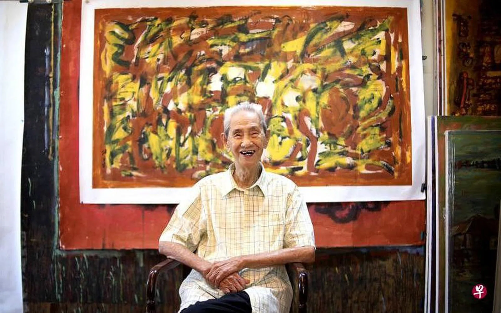 老人家说:“睡得好就可以画,睡不好就不能画。胃口也不好。毕竟年龄很高,最近写得较少。”